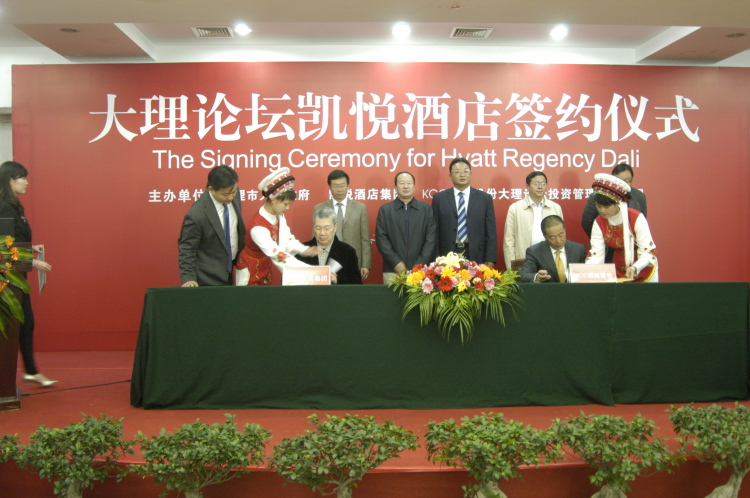 由KCC城建股份大理论坛投资管理有限公司投资建设的大理论坛项目,坐落在大理苍山东坡、洱海西岸的城郊结合部,是大理扩展新区重要的城市建设项目,是连接下关与大理古城的重要通道。KCC城建股份经过多次考察和研究,并结合大理旅游业发展状况,最终决定引进“Hyatt凯悦”品牌。据悉,此次合作的“Hyatt Regency Dali 大理凯悦酒店规模约5万平方米,总投资6.5亿元人民币,将于2013年年底投入运营。