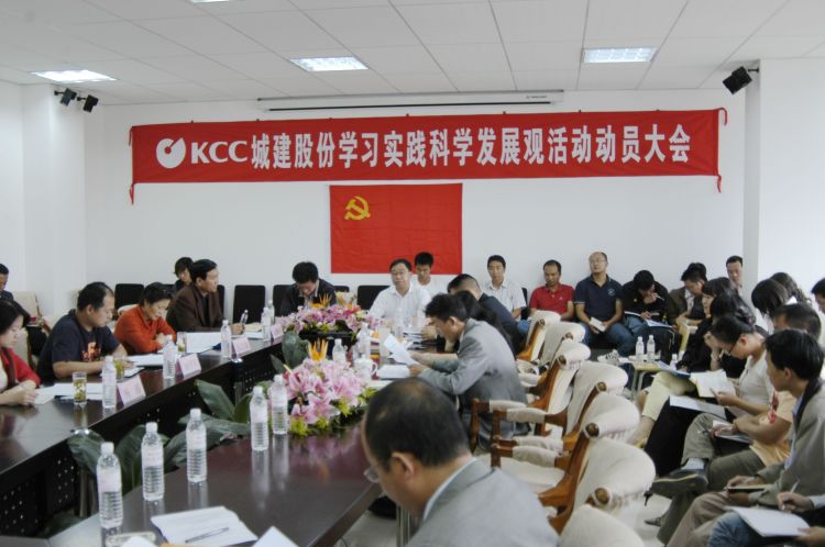 2009年9月25日下午,城建股份公司党委在云南映象售楼部2楼会议室隆重召开深入学习实践科学发展观活动动员大会,公司全体党员参加了会议。会议统一了全体党员、干部的思想认识,明确了学习实践活动各阶段工作任务。 市建设局检查指导组有关领导参加了动员大会。