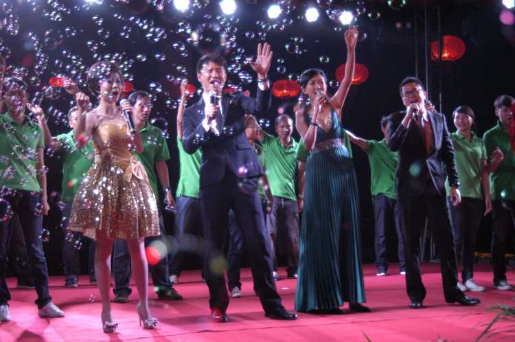 游园晚会上城建股份员工登台合唱《相亲相爱》