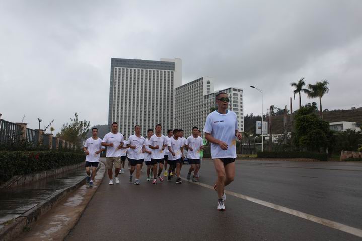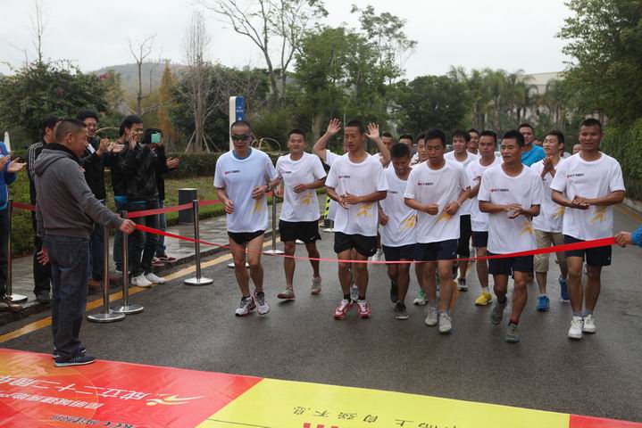 上午10:00时,工会主席马文强发令启跑后,以李捷董事长为首的22名运动员从湖畔圣水2号路口起步,进行全程22公里的长跑活动。活动在小雨中进行,但这丝毫没有影响到现场氛围,运动员充满自信、拉拉队员热情不减,最终于12:45时全部运动员顺利完成22公里长跑活动。