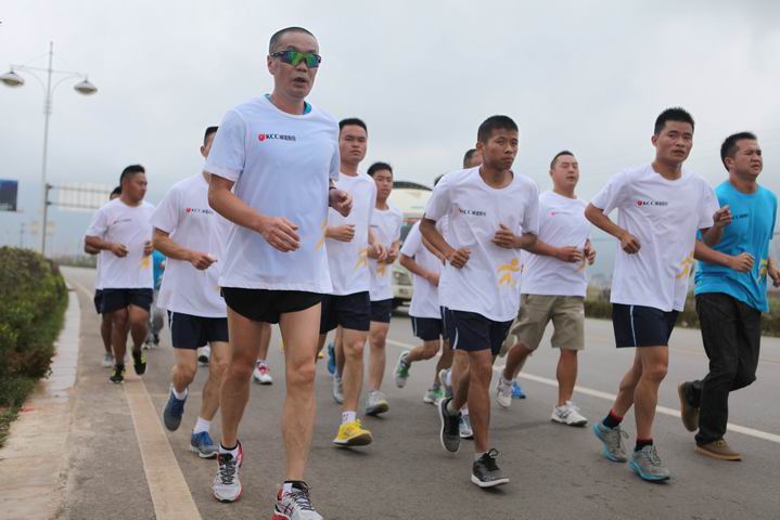 2014年11月6日上午,为庆祝公司成立二十二周年,弘扬团结拼搏、迎难而上、自强不息、锐意进取的工作作风,实现企业稳健可持续发展,KCC城建股份在美丽的抚仙湖畔“举办成立二十二周年长跑纪念活动”。澄江公司全体人员、澄江云之梦酒店及物业公司部分代表90余人参加了活动。