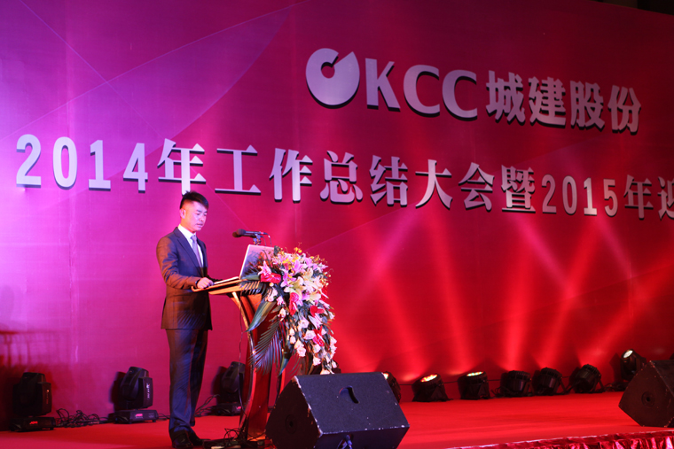 总结大会上,KCC城建股份总经理张旭珺作了《团结奋进 勇往直前 努力开创公司改革发展新局面》的主题工作报告,全面回顾了公司2014年度各项工作,总结成绩、分析不足、展望未来。