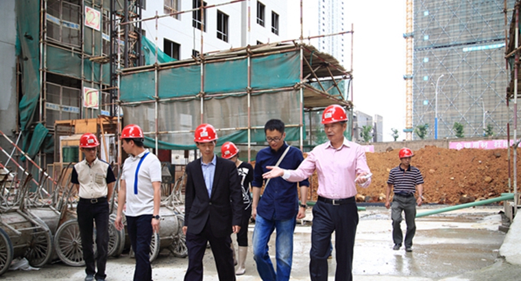 城建股份董事长李捷在检查云南映象城市公园广场施工质量