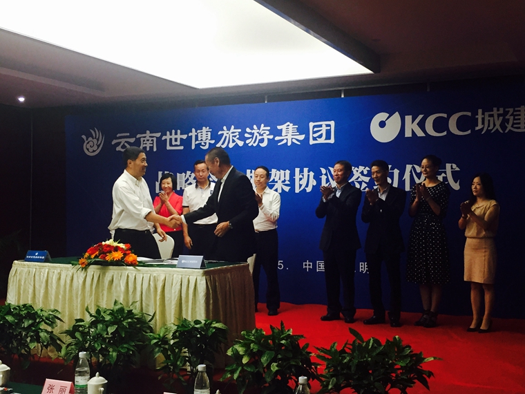2016年7月15日下午,云南世博旅游集团与昆明城建股份公司战略合作框架协议签约仪式在云南世博花园酒店举行。此次签约,标志着双方为加快旅游产业发展,整合优质资源,为加快产品开发、品牌建设、营销管理等方面的模式创新奠定了基础,对双方今后实现优势互补、共赢发展起到重要推动作用。